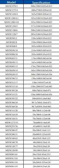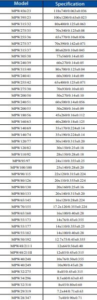 Dutch Wire Mesh Specification List